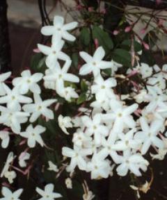 Jasmine is an evergreen, climbing shrub with dark green leaves and fragrant star shaped white or yellow flowers. There are a great many species of jasmine, in aromatherapy and perfumery the cultivars used include Jasminum grandiflorum, J.sambac and J.auriculatum.