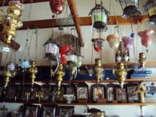 An ecclesiastical store is heavily fragranced with rose-dusted frankincense incense burning in a censer.