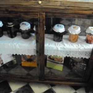 Spoon sweets are sweet preserves served in a spoon with a cold glass of water, a gesture of hospitality. They can be made from nuts, fruits, flower petals or berries.