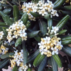 Pittosporum or Angeliki grows all over the island. This evergreen shrub is covered with small yellow to white flowers which are highly aromatic when they blossom in the Spring.